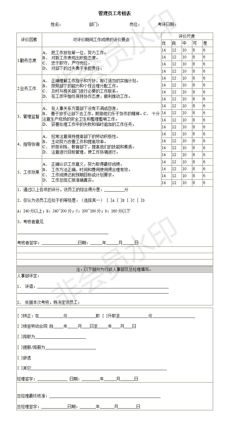 管理员工考核表