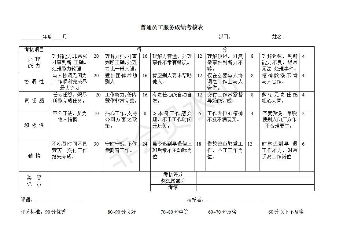 年度考绩表