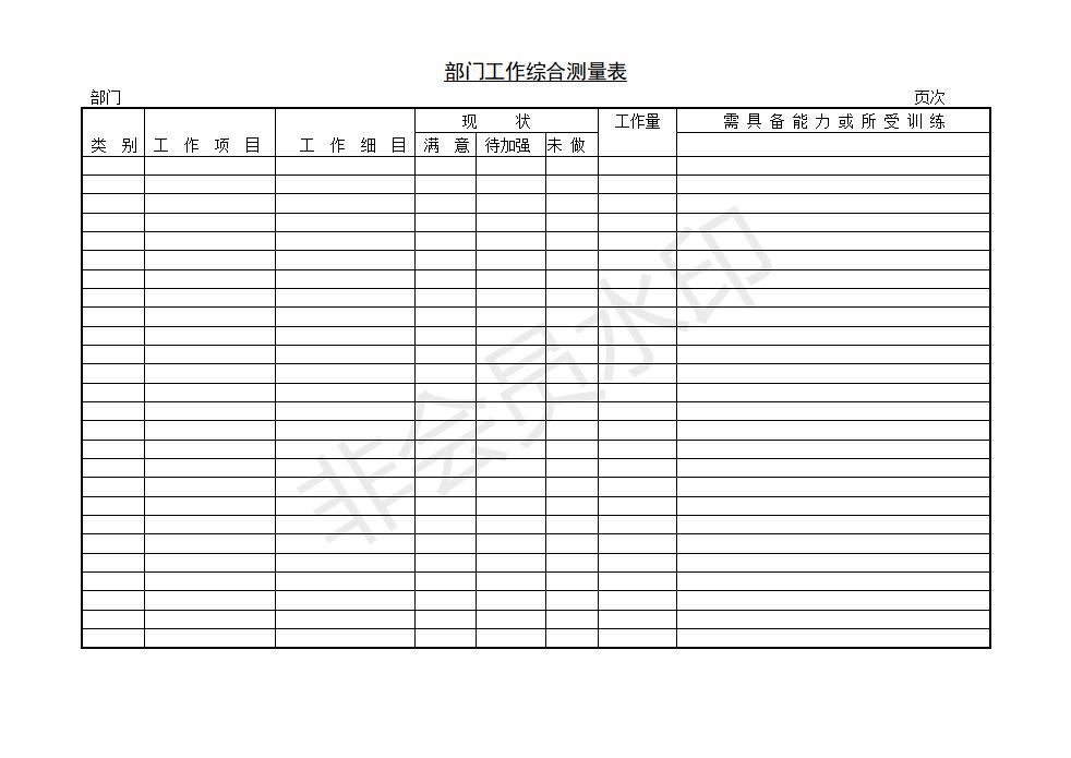 部门工作综合测量表