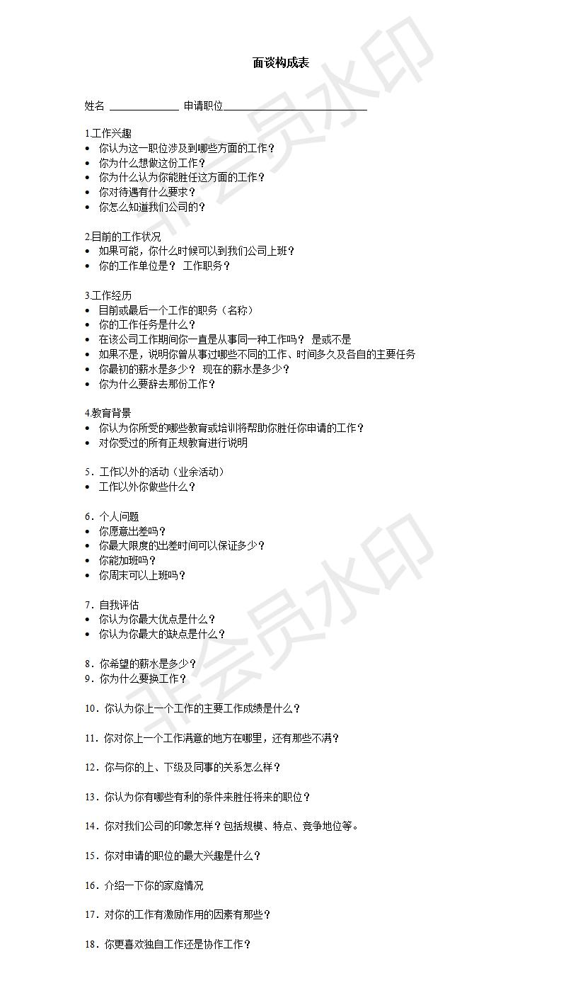 面谈构成表