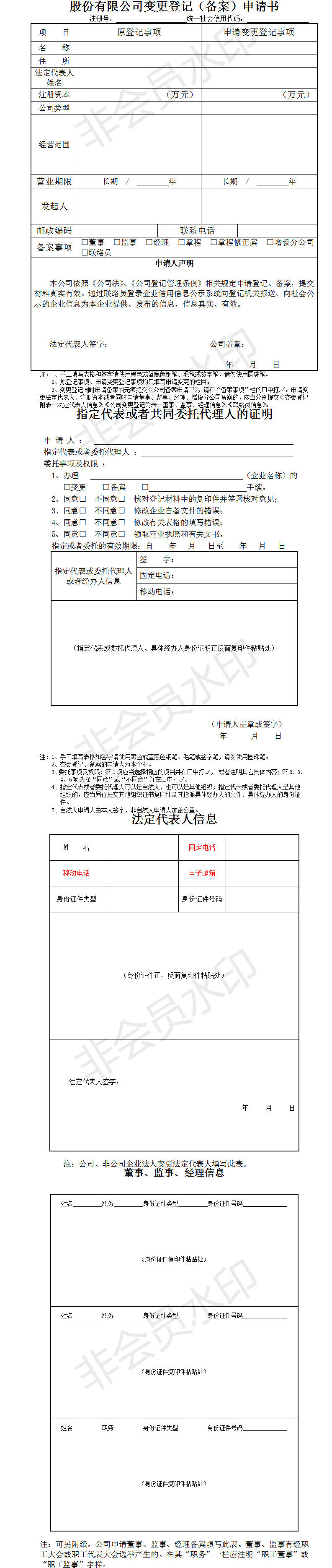 法定代表人变更申请书