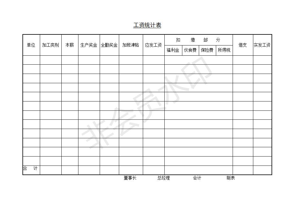 工资统计表
