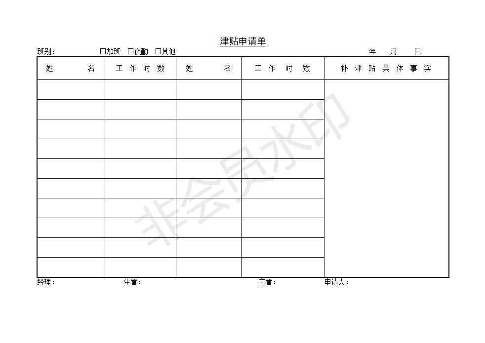 津贴申请单