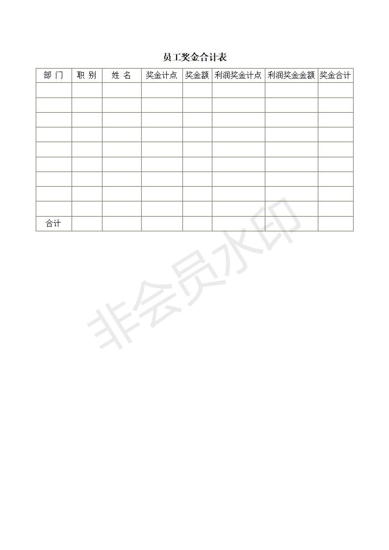 员工奖金合计表