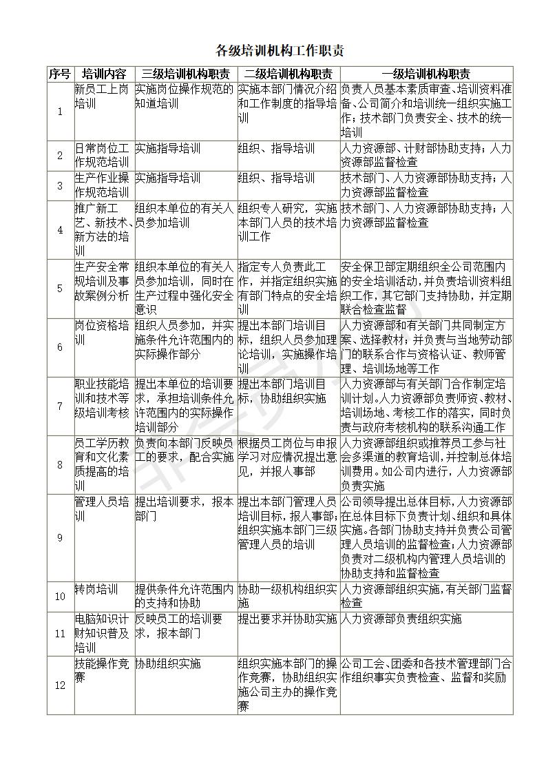 各级培训机构工作职责